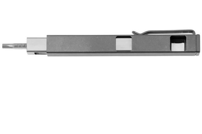 The Big Idea Design Bit Bar Inline Max Titanium is a unique screwdriver that can be used in three different ways. Thanks to its compact size, the Bit Bar Inline will easily fit inside your trouser pockets or EDC pouch. The clever design uses an extendable, square screwdriver in which the bits are held securely in place by magnets. By inserting the screwdriver into the titanium casing in three different ways, you can easily choose the configuration that best suits your job. The Bit Bar Inline Max has slightly more bits than the standard Bit Bar Inline.