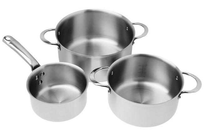 Thisde Buyer Alchimy 3601.06 3-piece stewpan and saucepan set with lids is perfect for preparing a variety of dishes, from simmering stews to cooking pasta and making delicious sauces. These Alchimy pans feature capacity measurements and offer an excellent heat distribution. With oven-resistant and practical pans, sturdy ergonomic handles that stay cool, this set offers ultimate convenience.